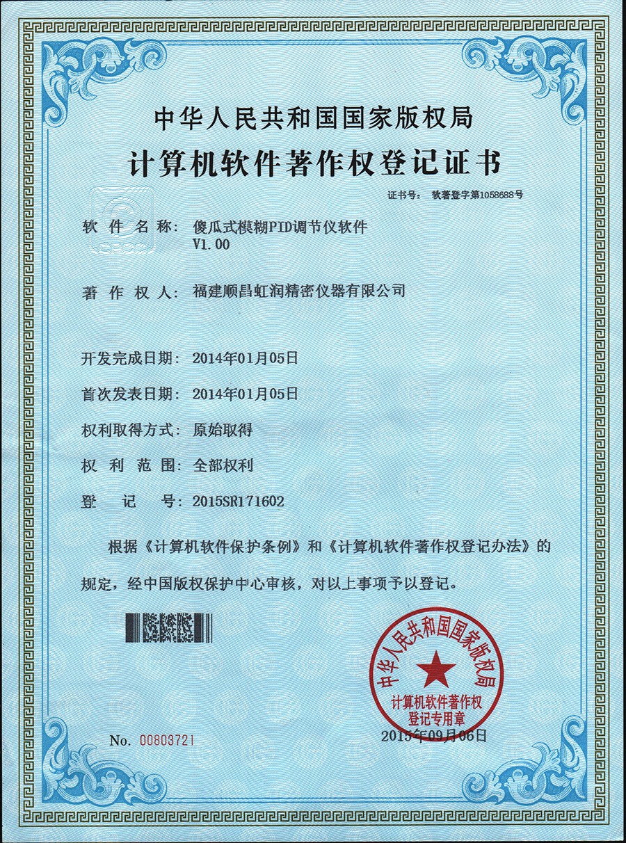 虹潤公司人工智能算式與模糊PID算式是虹潤公司應(yīng)用自主知識(shí)產(chǎn)權(quán)開發(fā)的新一代智能溫控儀表,產(chǎn)品榮獲一種人工智能調(diào)節(jié)器及其調(diào)節(jié)方法(專利號(hào):2016107742425)、模糊PID控制儀及控制方法(專利號(hào)2015109378814)、一種智能化控制器及自整定方法(專利號(hào)2016103155465)、閥門自動(dòng)、手動(dòng)無擾動(dòng)操作控制方法及裝置(專利號(hào)2007101540083)4項(xiàng)國家發(fā)明專利,NHR人工智能模糊PID調(diào)節(jié)器(版權(quán)登記號(hào)2009SR044371)傻瓜式模糊PID調(diào)節(jié)儀軟件V1.00 (版權(quán)登記號(hào)2015SR171602)2項(xiàng)軟件著作權(quán)。