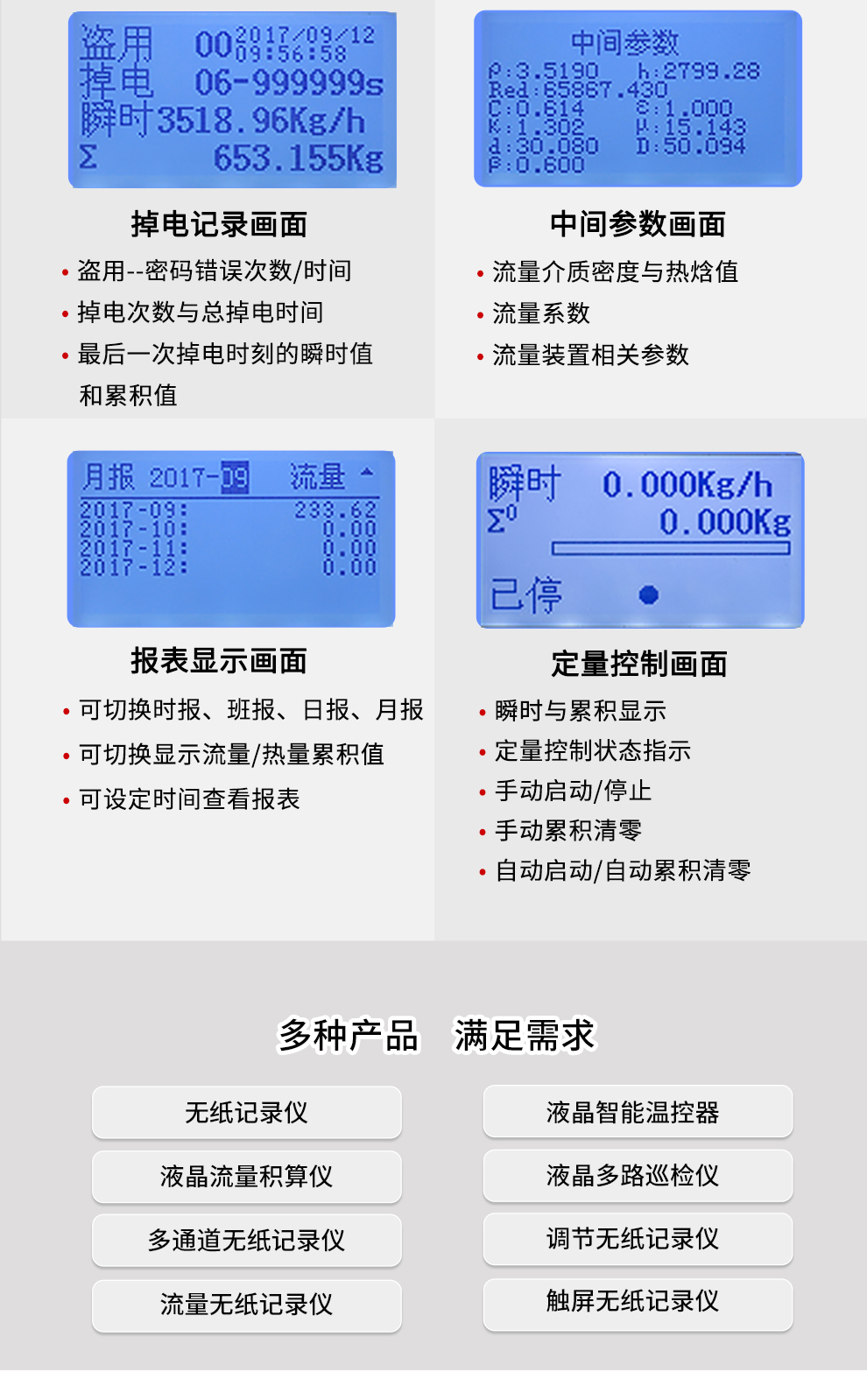 • “傻瓜式”液晶流量積算儀接收來自流量傳感器信號(差壓、脈沖等)、溫度、壓力傳感器的補償信號實現對氣體、熱水和蒸汽流量進行過程監測,總量累積及定量控制。