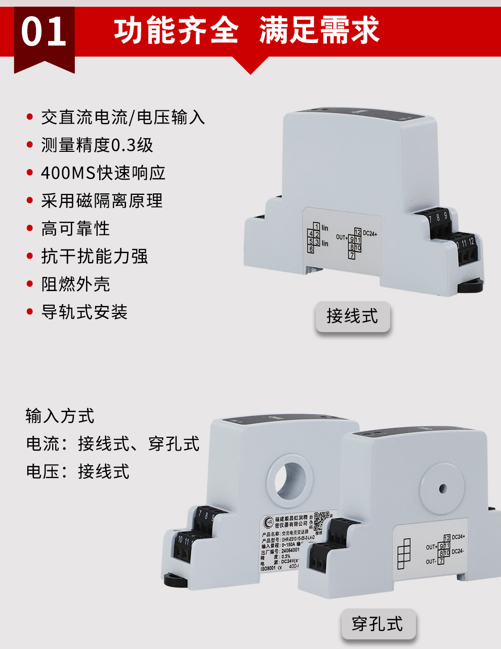 電流變送器/電壓變送器流線型外觀,簡約卡裝式結構,強抗干擾能力,高精準測量