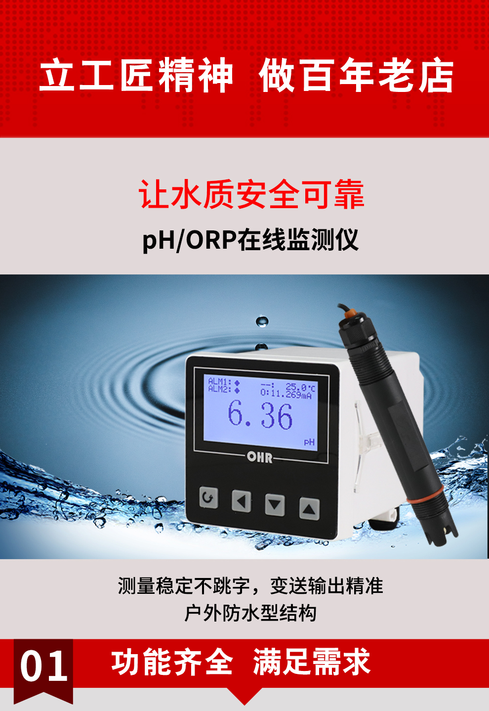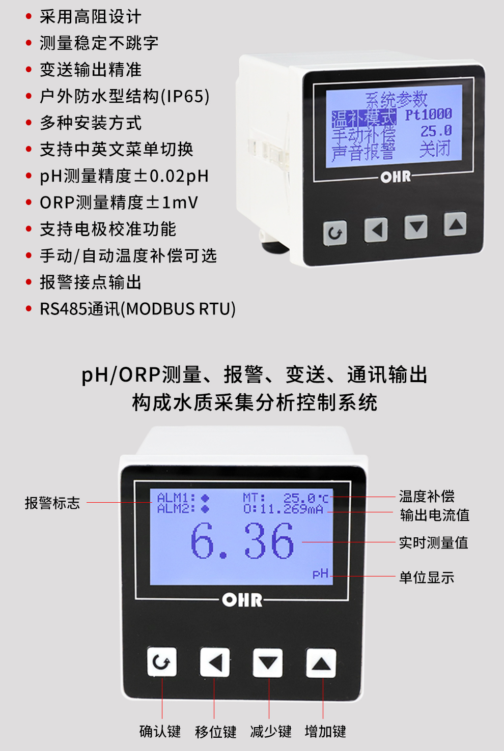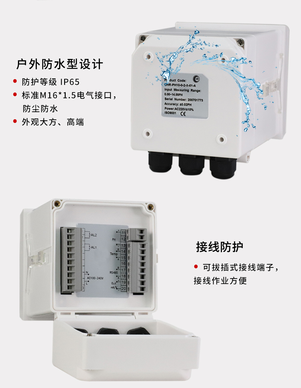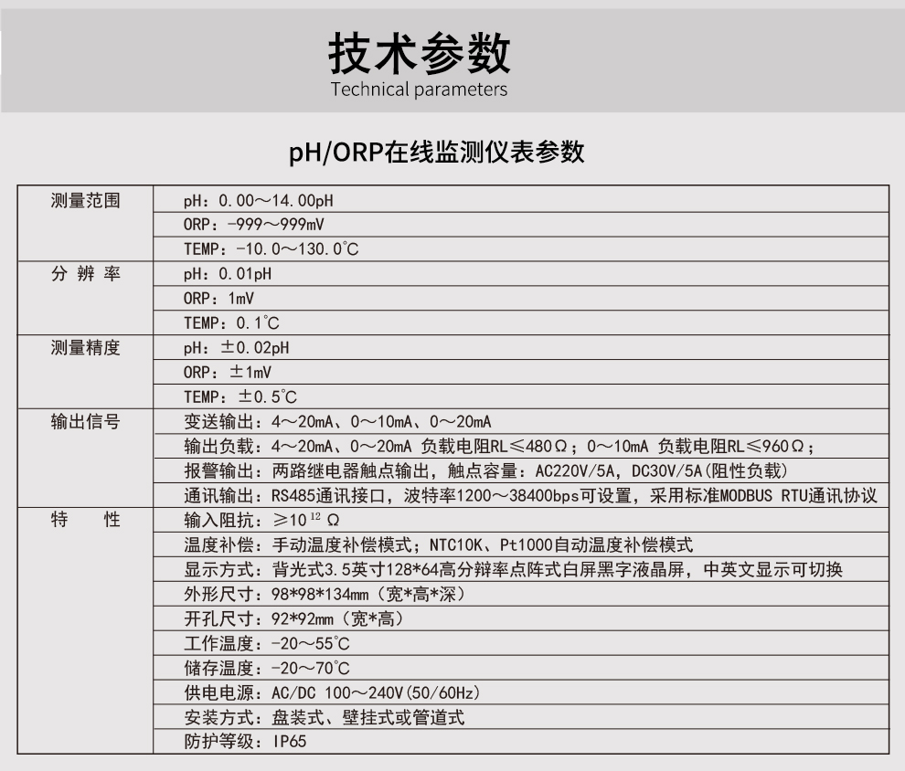 • PH計采用高阻設計,測量穩定不跳字,抗干擾能力強,戶外防水型結構,變送輸出精準