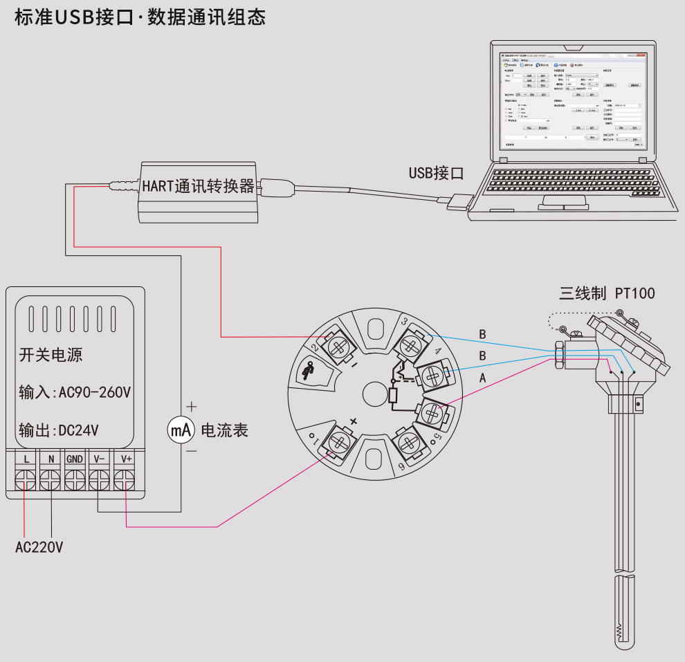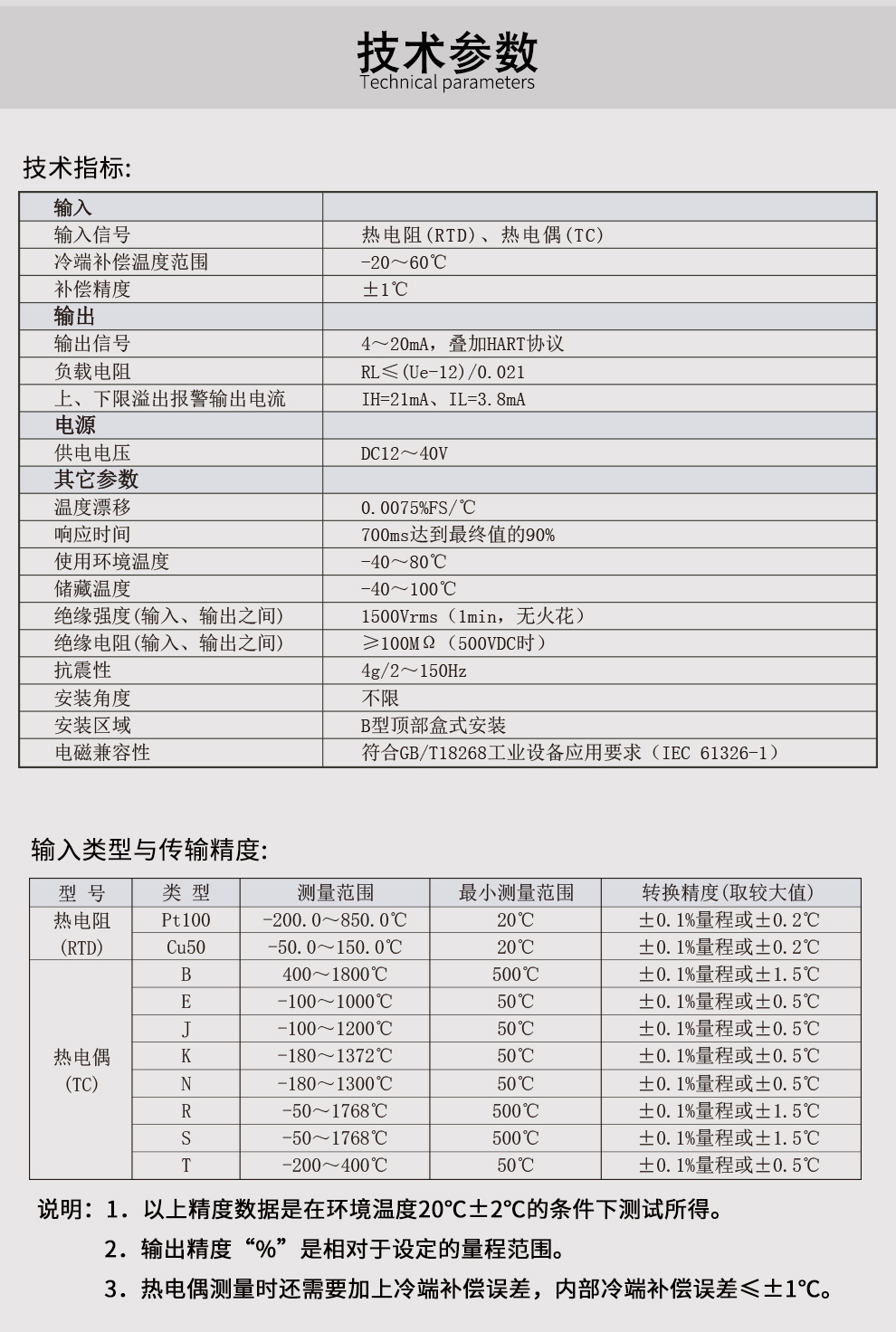 • 溫度變送器將現場的熱電阻或熱電偶等溫度傳感器信號經過隔離放大處理,轉換為與溫度成線性的二線制4-20mA信號輸出至控制系統。